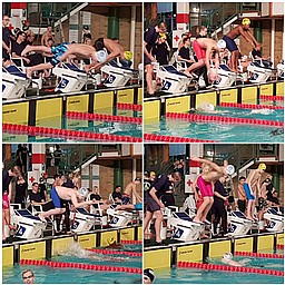 I lagkapperna 4x100m medley och 4x100m frisim för de yngsta killarna, lyckades de ovannämnda killarna slipa ner anmälningstiden med någon sekunder på båda lagkapperna.